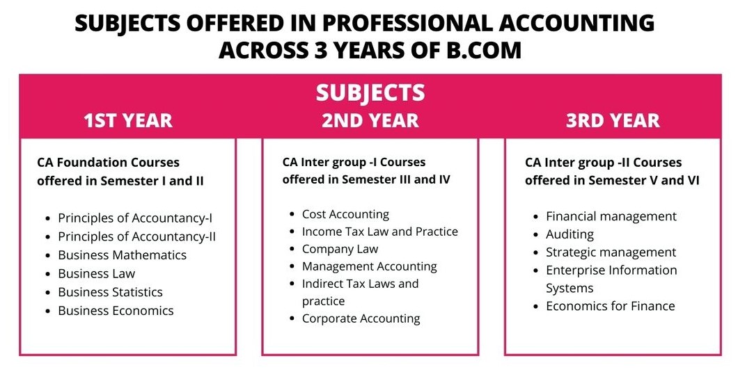 Subjects Offered in Professional Accounting – Across 3 years of B.Com